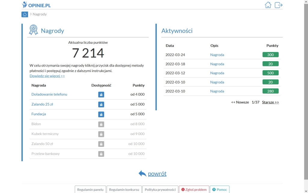 Zdobyte punkty możemy w łatwy sposób wymienić na nagrody: